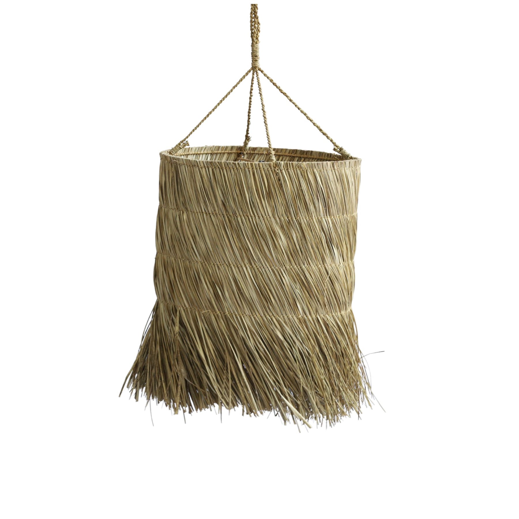 Entièrement façonnée à la main en feuille de palmier, elle joue avec la lumière comme le vent avec les feuillages. Ses franges naturelles ondulent avec grâce, rappelant les bordures d’un chapeau de paille ou les jupes d’un bal caraïbéen.