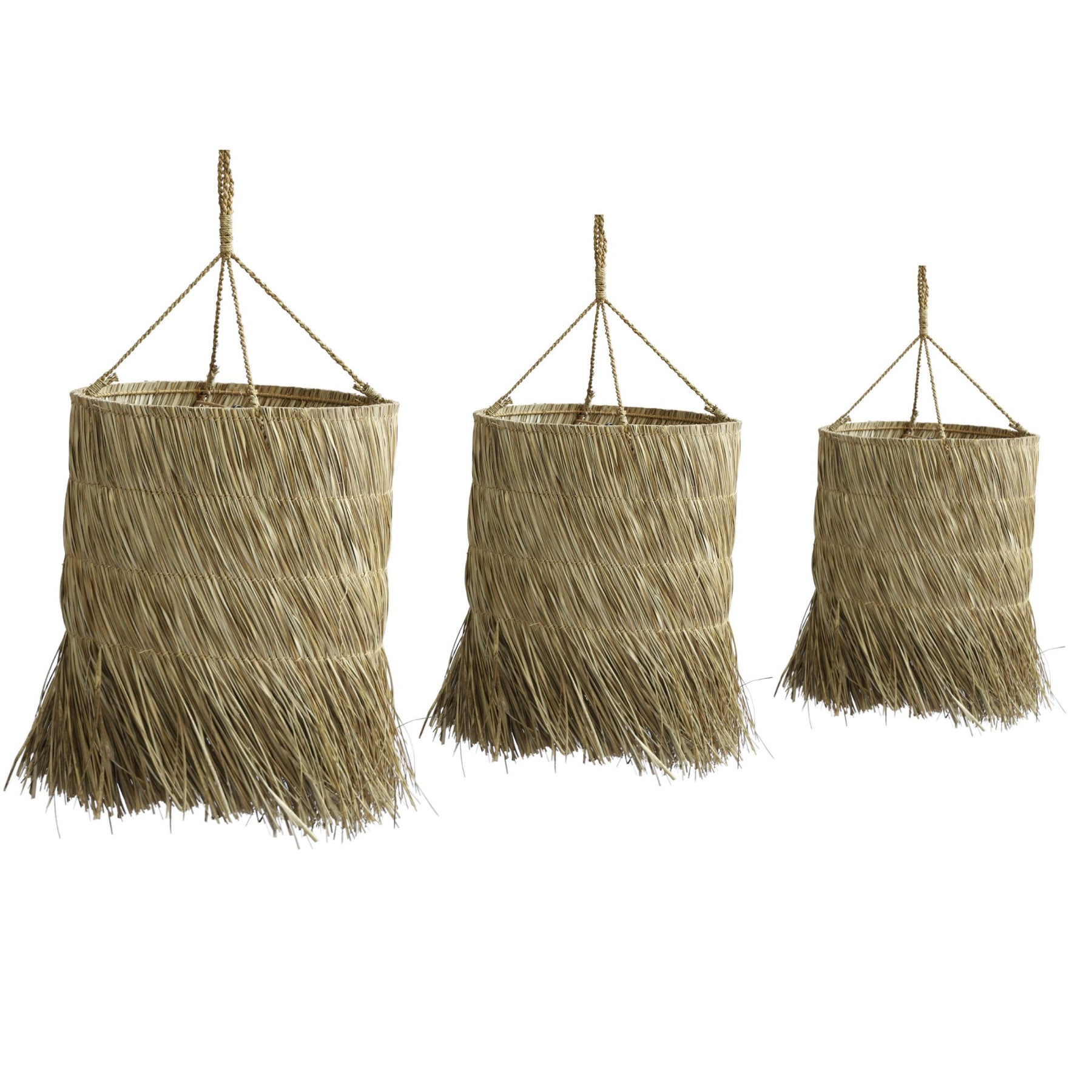 Entièrement façonnée à la main en feuille de palmier, elle joue avec la lumière comme le vent avec les feuillages. Ses franges naturelles ondulent avec grâce, rappelant les bordures d’un chapeau de paille ou les jupes d’un bal caraïbéen.