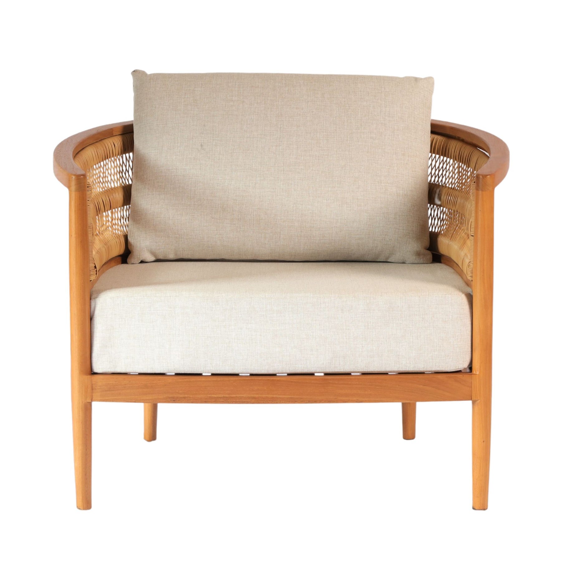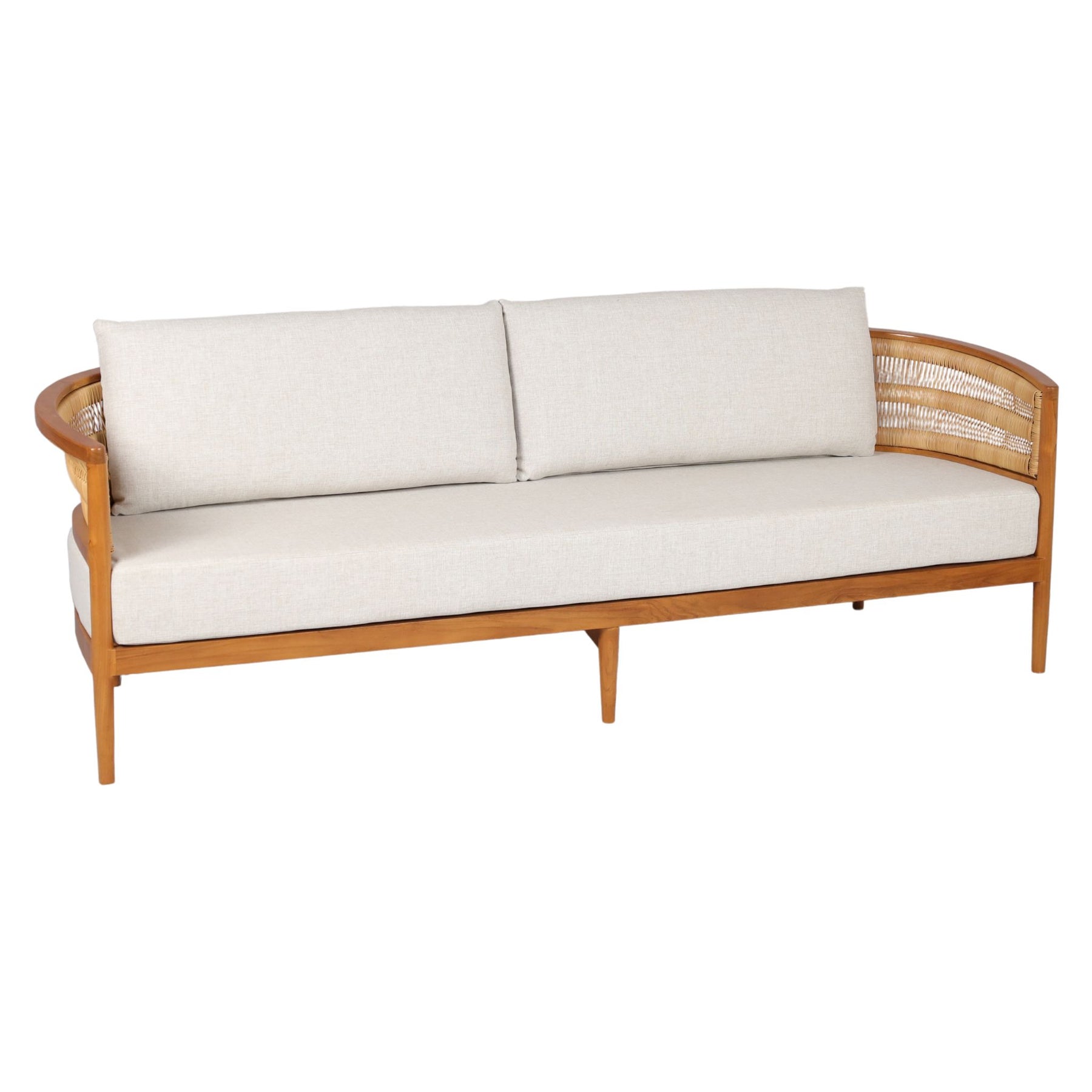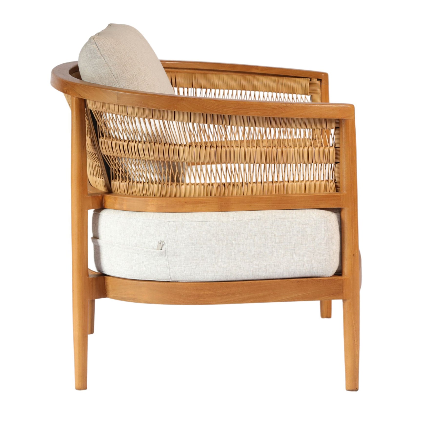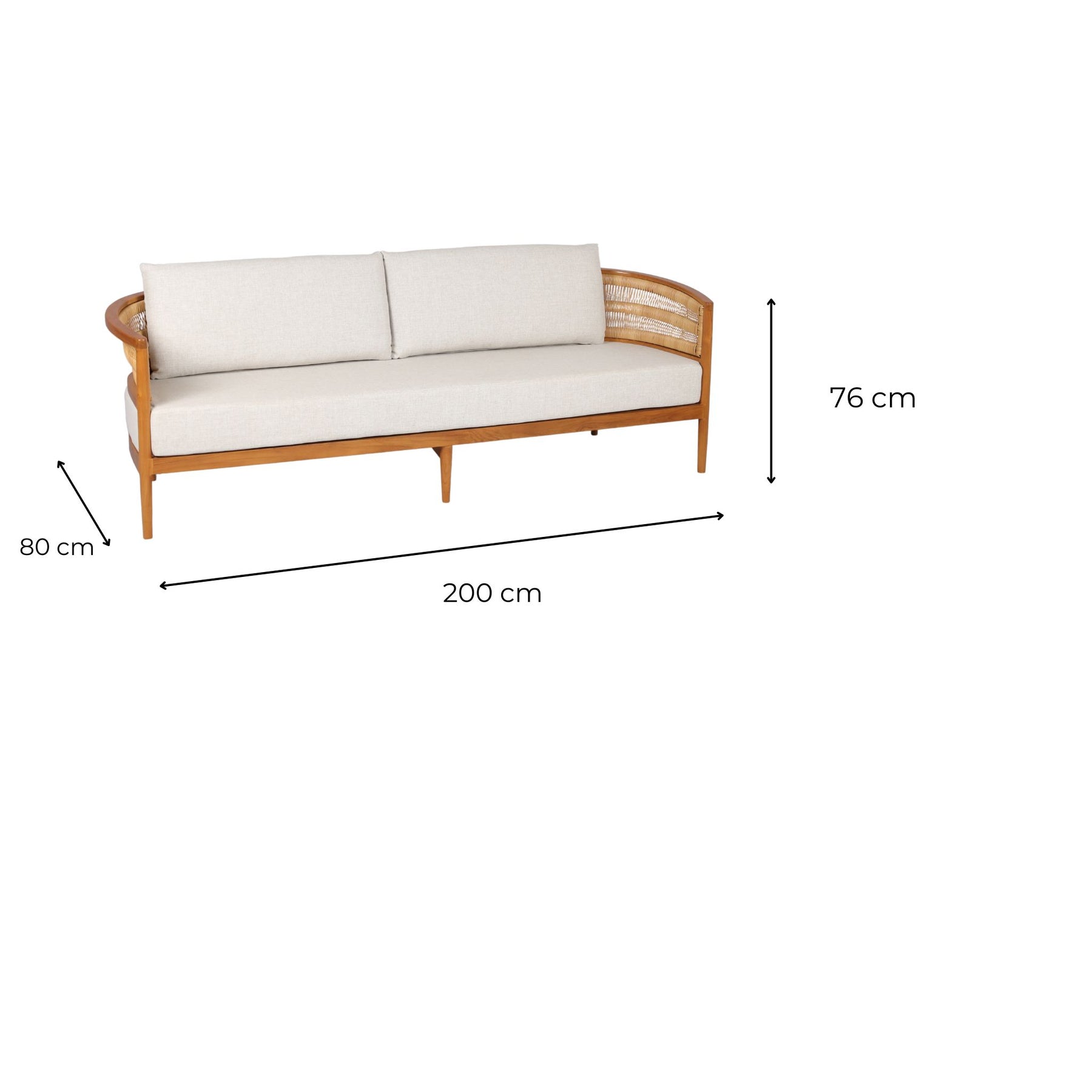 Bienvenue dans l'univers de relaxation avec le salon Rey, conçu pour transformer votre espace extérieur en un sanctuaire de confort et de style. Ce set élégant se compose d'un sofa spacieux, de deux fauteuils accueillants et d'une table basse fonctionnelle, tous fabriqués en teck robuste et agrémentés de tressages en rotin synthétique de haute qualité, résistant aux intempéries.
