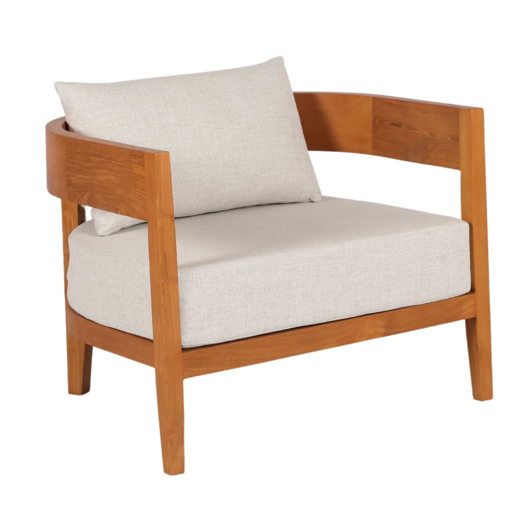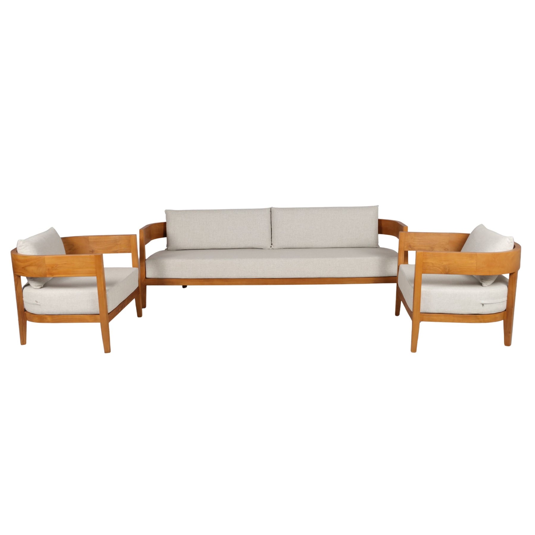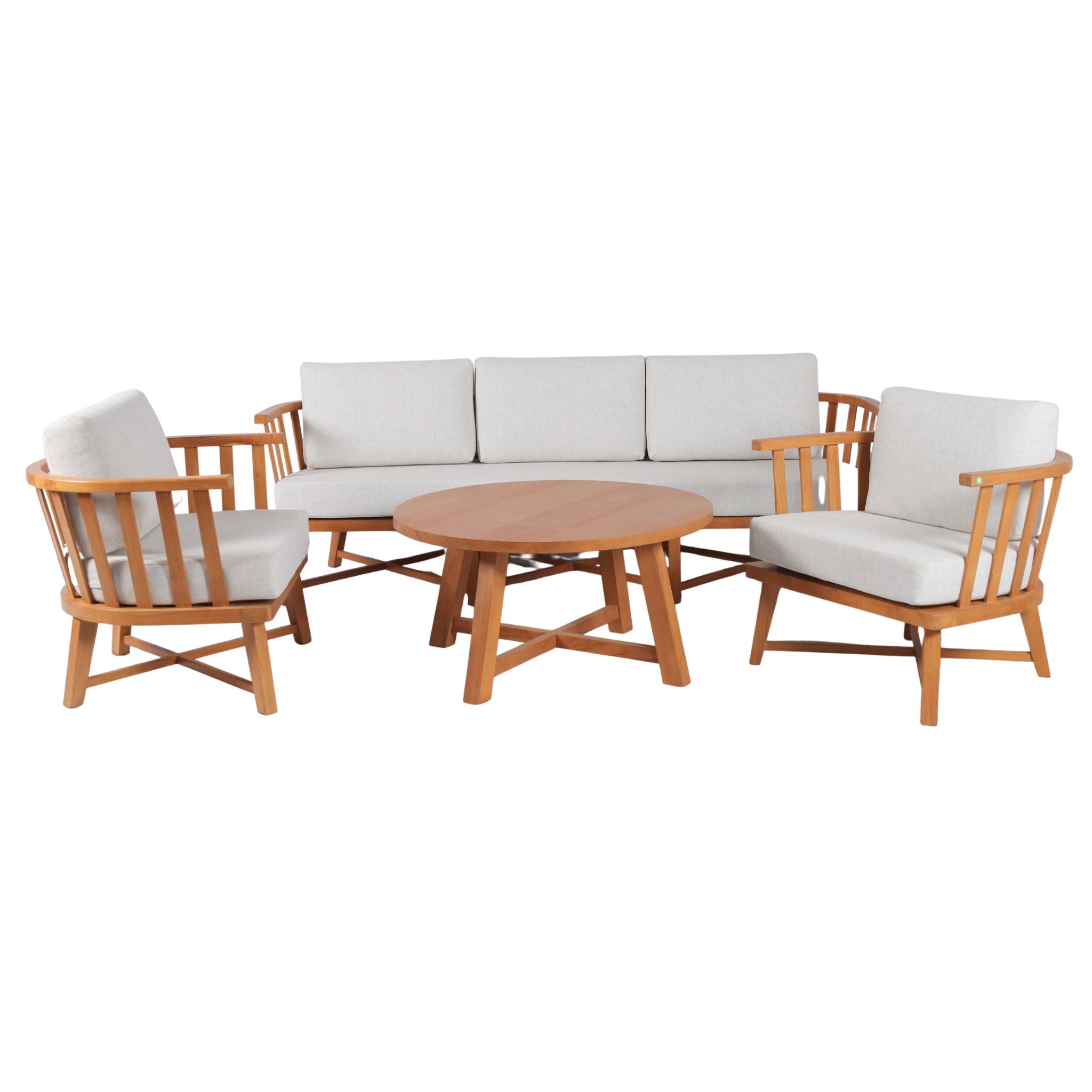 Le Salon Arrón est une pièce maîtresse qui transcende les conventions du mobilier en teck. Ses lignes douces et son allure aérienne créent une atmosphère apaisante, tandis que le teck ajoute une touche de chaleur naturelle. Choisissez entre des coussins sauge pour une ambiance naturelle ou des coussins blancs pour une esthétique épurée.